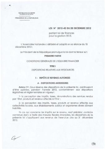 LOI N°2012-42 DU 28 DECEMBRE 2012