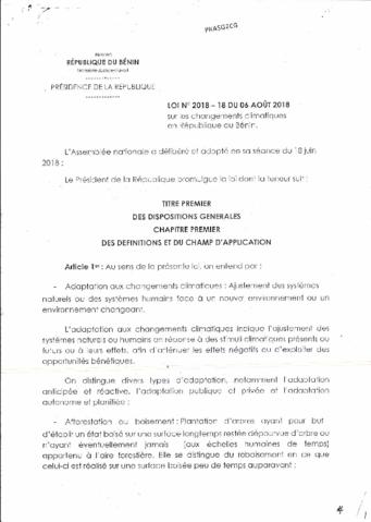 LOI N°2018-18 DU 06 AOÛT 2018