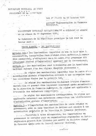 LOI N°81-013 DU 10 OCTOBRE 1981