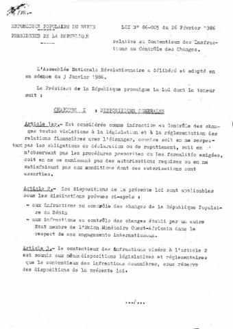 LOI N°86-005 DU 26 FEVRIER 1986